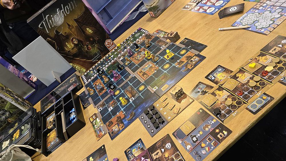 In „Thiefdom“ (Karma Games) repräsentieren die Spieler konkurrierende Diebesgilden in der reichen mittelalterlichen Stadt Bacharach, deren modulares Layout sie erkunden und ausrauben. Bei dem strategischen, interaktiven „Pick-up and Deliver“-Spiel bewegen die Spieler ihre Diebesfiguren, um Beute von einem Ort zu stehlen und sie an einem anderen abzuliefern. Die zentrale Herausforderung besteht darin, den vier Stadtwachen auszuweichen, die von allen Spielern kontrolliert werden, da eine Gefangennahme zum Verlust der Beute führt; über sechs Runden gewinnt die Diebesgilde mit den meisten Siegpunkten. Taktik und Interaktion sind bei „Thiefdom“ Trumpf.