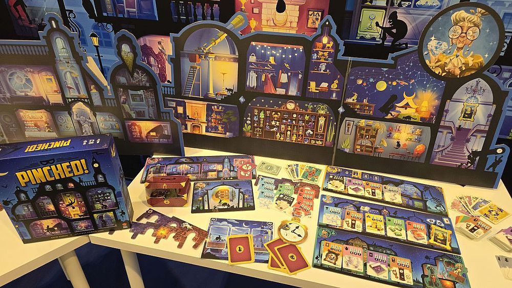 In „Pinched“ (Mighty Boards) schlüpfen die Spieler in die Rollen von Einbrechern („Vermögensumverteilern“) in einer Stadt, in der die Reichen mit ihren Wertsachen protzen. Das Ziel ist es, in die Häuser einzubrechen und so viel Beute wie möglich zu machen. Es ist ein Spiel mit den Hauptmechaniken Deduktion und Set Collection. In jeder Runde plant ein Spieler als „Mastermind“ einen Einbruch. Die anderen Spieler versuchen durch Deduktion zu erraten, wo der Mastermind zuschlagen wird, um sich ihm anzuschließen. Der Mastermind-Spieler will lieber alleine bleiben, denn er erhält die gesamte Beute, wenn er unentdeckt bleibt. Erraten die anderen Spieler den Ort jedoch korrekt und tauchen dort auf, können sie Wertsachen vom Mastermind stehlen. Der Spieler, der am Ende die meisten gestohlenen und verkauften Wertsachen besitzt und somit den größten Reichtum „umverteilt“, gewinnt. Ein Spiel, das seinen Zauber am besten mit einer guten Portion „Trash Talk“ am Tisch zu entfalten vermag.