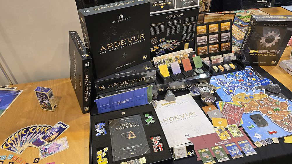 „Ardevur“ (#64-Verlag) ist eine schick umgesetzte Bergbau-Lieferketten-Simulation in der modernen Welt, die in einem volatilen, nachfragegesteuerten Wirtschaftsszenario spielt. Die Spieler übernehmen die Kontrolle über mächtige, asymmetrische Bergbaukonzerne, die um die Rohstoffgewinnung in den Regionen Afrika und Europa konkurrieren. Klassifizieren kann man „Ardevur“ als ein kompetitives Wirtschafts- und Strategie-Brettspiel mit den Hauptmechaniken Gebietserstellung, Ressourcenmanagement und Verhandlung/Handel. Der Kern liegt in einem vierphasigen Zyklus aus Extraktion, Strategie, Entwicklung und Belohnung, wobei der Fokus auf langfristigen Investitionen und der Optimierung der Lieferkette liegt. Die Spieler versuchen, die Nachfrage nach kritischen Mineralien zu decken, ihre Bergbauanlagen zu entwickeln, Ressourcen zu handeln und Kapital aufzubauen, um die Gesamtkontrolle über den turbulenten Markt zu erlangen und als Sieger hervorzugehen. Das Spiel legt Wert auf strategische Fähigkeiten und kommt mit wenig Glück aus. Der Autor Gabriele Aerolite ist selbst in der Bergbau-Industrie beschäftigt und hat seine Expertise bei der Entwicklung des Spiels eingebracht. Ich habe ein Rezensionsexemplar bekommen und werde das Spiel hier rezensieren.