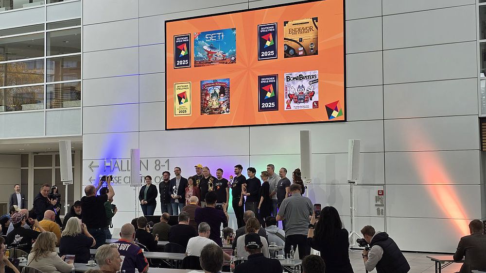 Alle Tage ausverkauft – 220.000 Besucher. Das hatte es zuvor noch nicht gegeben. Und das trotz der Vergrößerung von sechs auf sieben Hallen. Knapp 950 Aussteller haben ihren Weg nach Essen gefunden. Die SPIEL feiert Rekorde und platzt aus allen Nähten. Und die U-Bahn, Straßen und Parkplätze platzen gleich mit. Als ich am Mittwoch in der Spielestadt der Welt angekommen bin, wurde auf der Pressekonferenz gerade der Gewinner des Deutschen Spielepreises 2025 gekürt: „SETI: Auf der Suche nach außerirdischem Leben“, auf Deutsch erschienen im Heideberger Spieleverlag. Es hatte sich gegen „Endeavor – Die Tiefsee“ (Frosted Games) und „Bomb Busters“ (Pegasus Spiele) durchgesetzt. Klar ist, dass die SPIEL auch nächstes Jahr wieder in Essen stattfindet. Mal schauen, wann sie ihrer Geburtsstadt entwachsen sein wird.