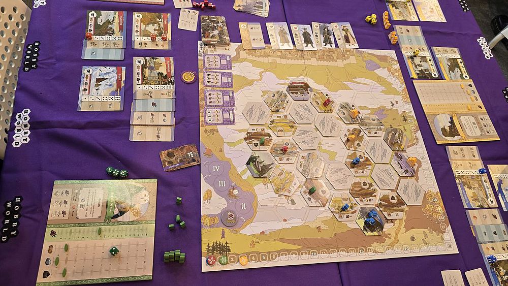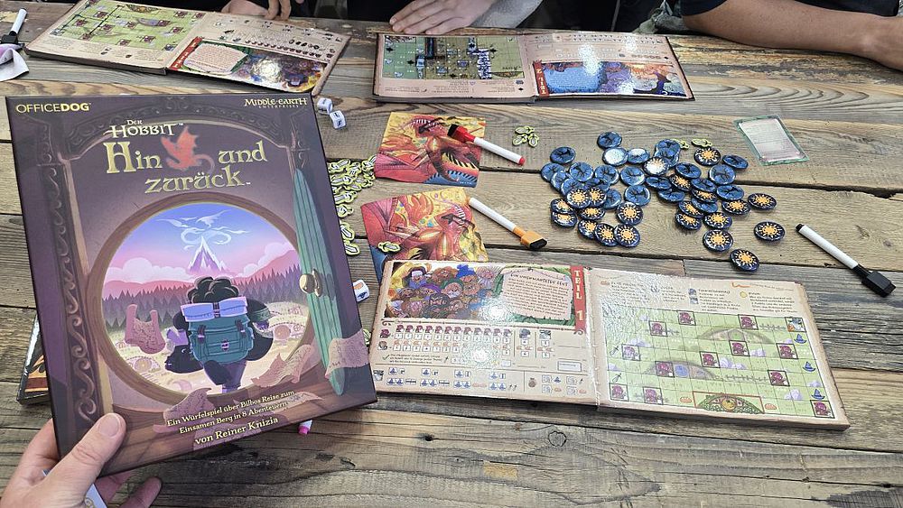 „Der Hobbit: Hin und zurück“ ist ein kompetitives Roll-and-Write-Abenteuerspiel mit Würfel-Drafting für 1 bis 4 Spieler. Wir wählen rundenweise Würfel aus, um in unserem persönlichen Abenteuer-Wegwisch-Buch Pfade zu zeichnen, Ressourcen zu sammeln und Aktionen auszuführen – natürlich um unser aktuelles Kapitelziel mit Höchstpunktzahl zu erreichen. Das Spiel führt die Spieler durch acht Kapitel aus dem Roman „Der Hobbit“. Wir haben das erste Kapitel angespielt. Hier konnte das Spiel seine Magie noch nicht zeigen. Der Würfelmechanismus erschien mir sehr glückslastig. Ein Urteil kann ich nach der halben gespielten Partie nicht fällen.