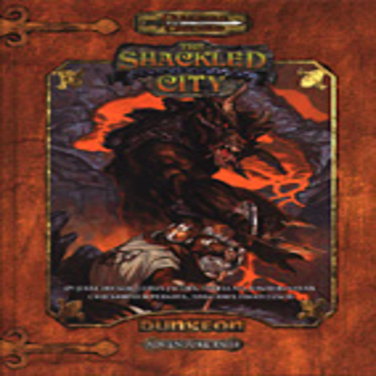 „The Shackled City“ ist eine Abenteuersammlung, welche die Helden von der ersten bis zur zwanzigsten Stufe führen soll. Das Werk in gebundener Form ist mit einer beeindruckenden Kampfszene auf der Vorderseite versehen. Sie zeigt ein dämonisches Wesen, das mit seinen Klauen einem tapferen Helden Schild und Waffe zerstört. Die Verarbeitung macht einen sehr guten Eindruck und sollte zahlreichen Sitzungen standhalten.