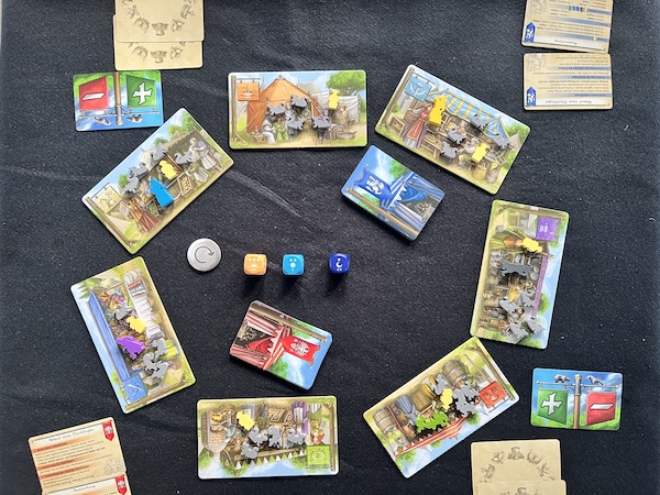 Das Material beinhaltet viele Holzteile und schenkt euch individuell gestaltete Meeple. Da wurde auch ans Auge gedacht. Um den optischen Rest hat sich Dennis Lohausen gekümmert. Er schafft es, mich wirklich in ein mittelalterliches Szenario zu versetzen, in dem Gaukler und Marktschreierinnen zuhause sind.