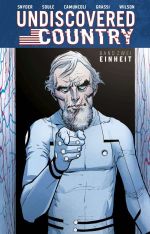 Fazit: „Undiscovered Country 2“ geht die Geschichte insgesamt etwas ruhiger an, als sein Vorband. Das liegt zum einen daran, dass die Zone „Einheit“ mit ihren Innovationen sehr klinisch und puritanisch ist und weniger Action zulässt, zum anderen an der farblichen Gestaltung in überwiegend weiß-blau-rot Tönen. Erneut ist der Comic sehr textlastig und die Anzahl der Anspielungen und gesellschaftskritischen Aspekte ist stark abhängig vom eigenen Interesse an den USA, deren Historie und politischen System. Unabhängig von diesem möglichen Kritikpunkt, präsentiert der Comic auf drastische Weise die Schattenseiten des technologischen Fortschrittsdenkens. Am Ende des Comics lassen Soule und Snyder den gezeichneten iPod das Lied: „Weird Science“ von Oingo Boingo aus dem Jahre 1985 spielen und so die Grenze zwischen Fiktion und Realität verschwimmen. Seltsam gut!